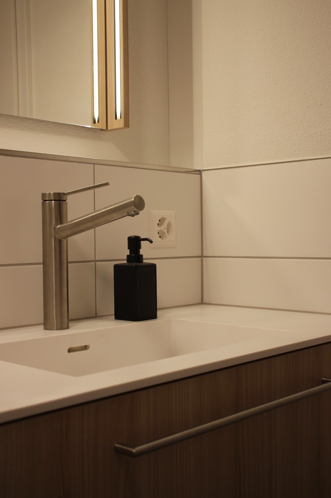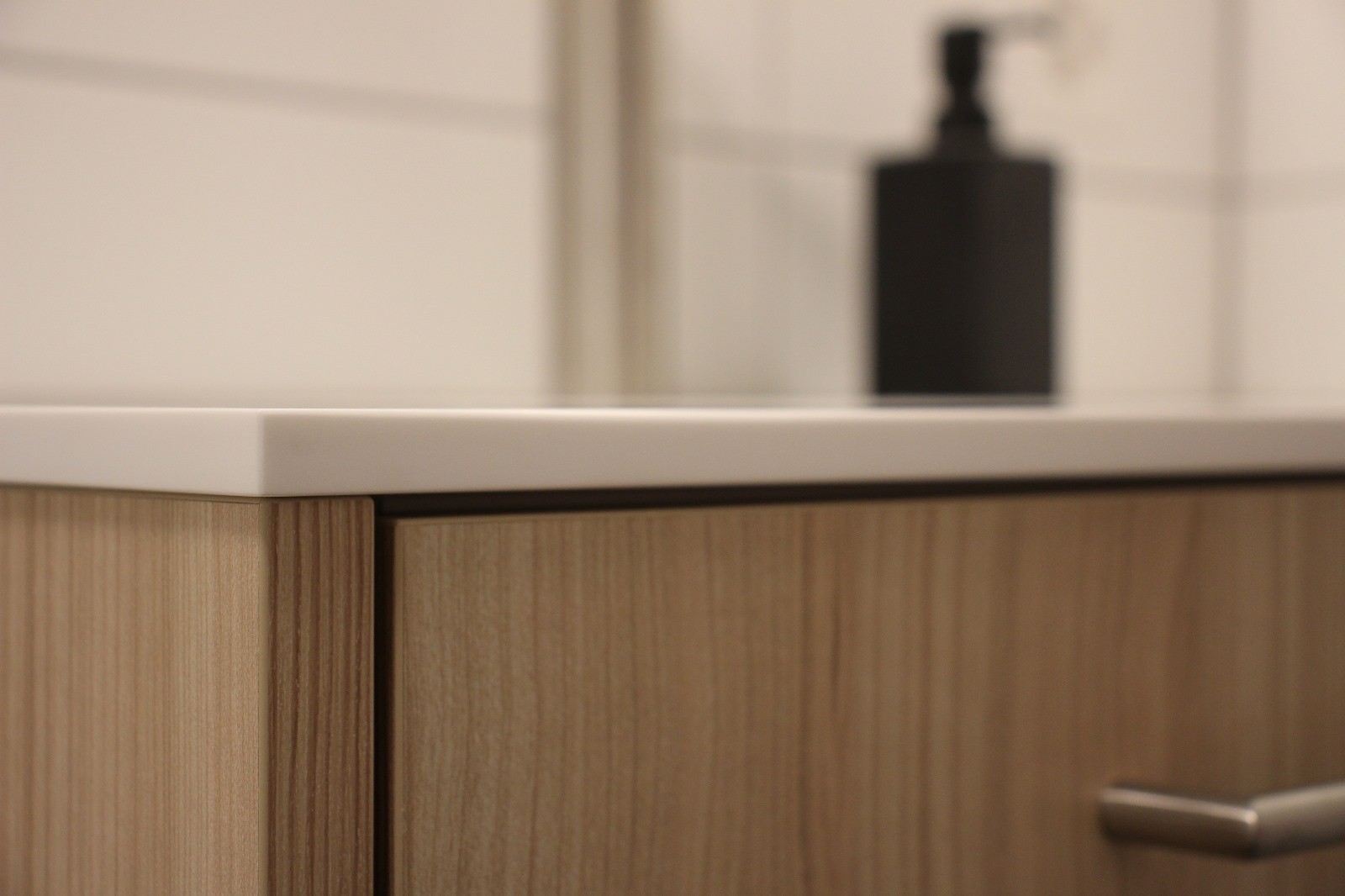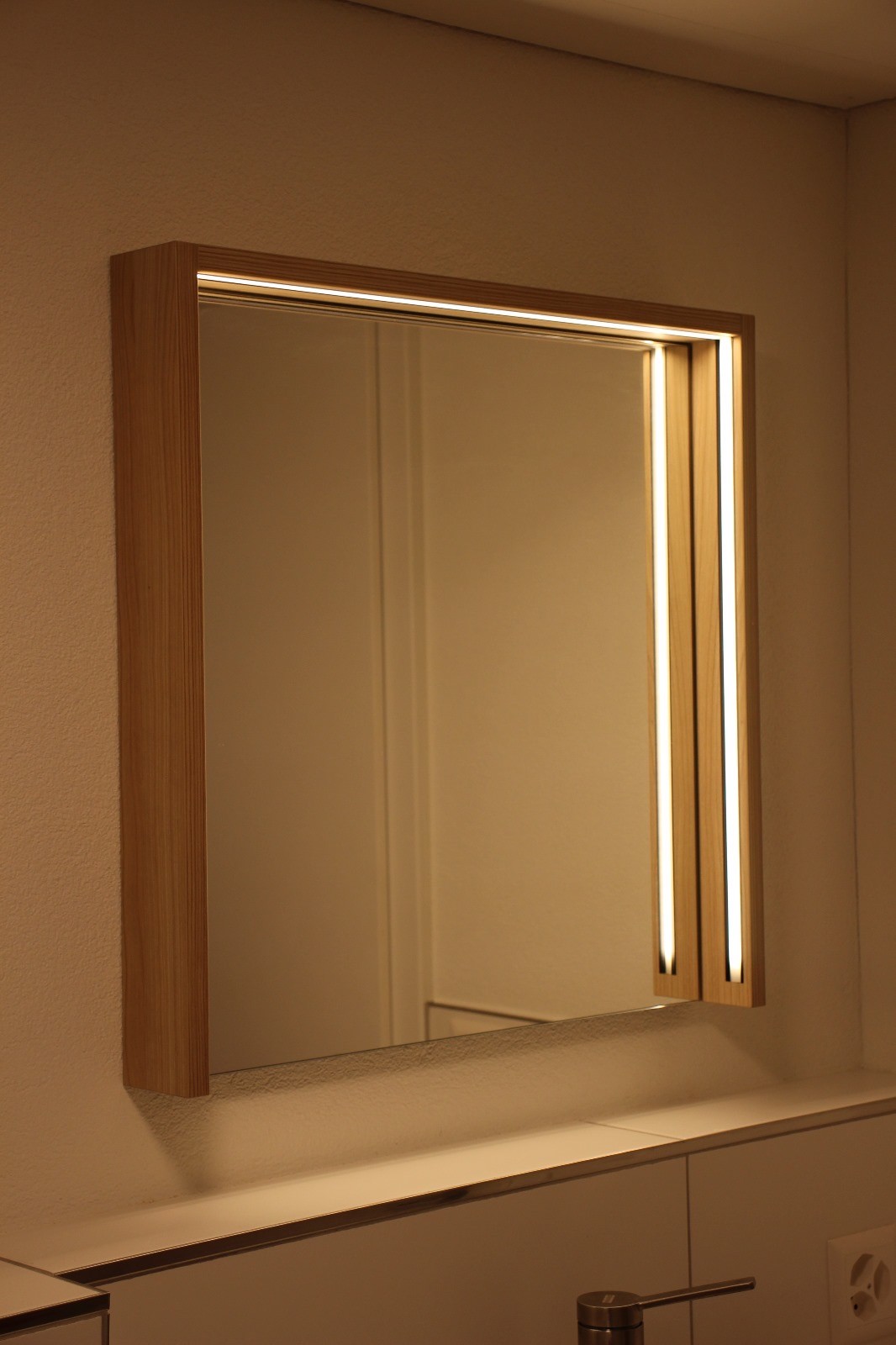 Schönes Badmöbel in Kirschbaumoptik. Dazu der passende Spiegel mit einem LED-Streifen. 😊🛀