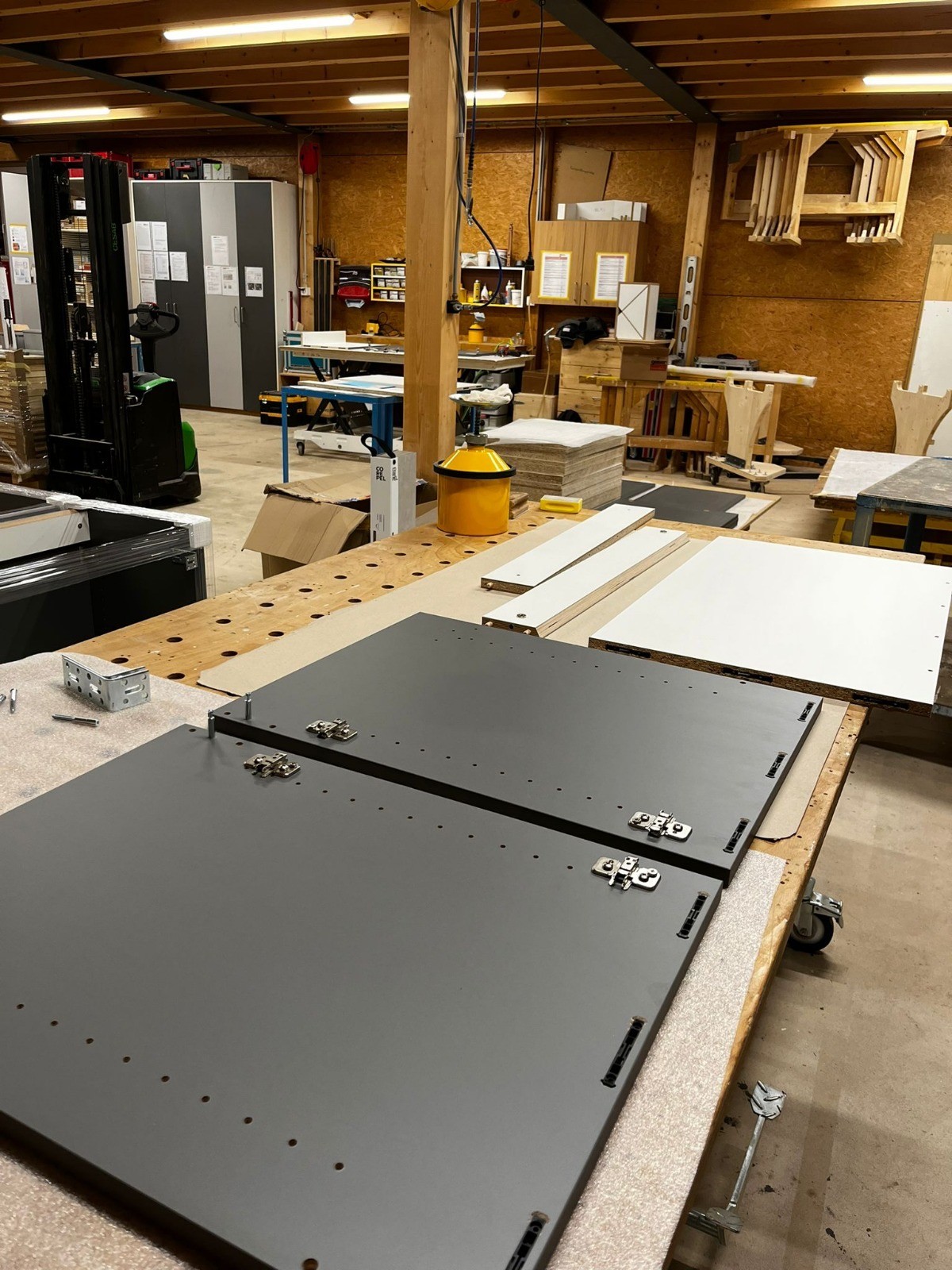Für einen Neubau mit 21 Kleinwohnungen dürfen wir so gut wie alle Zimmer- und Schreinerarbeiten ausführen. Dazu gehört auch die Produktion der 21 Badmöbel. 🛁