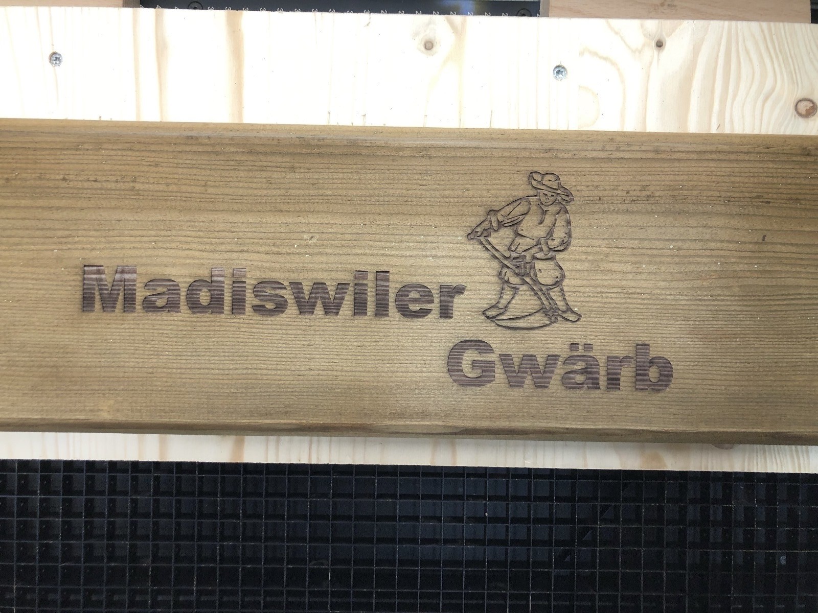 Für den Gewerbeverein Madiswil durften wir nämlich mehrere solcher Banklehnen mit einer Gravur personalisieren. 😎