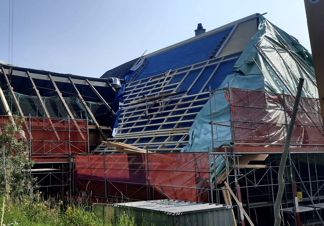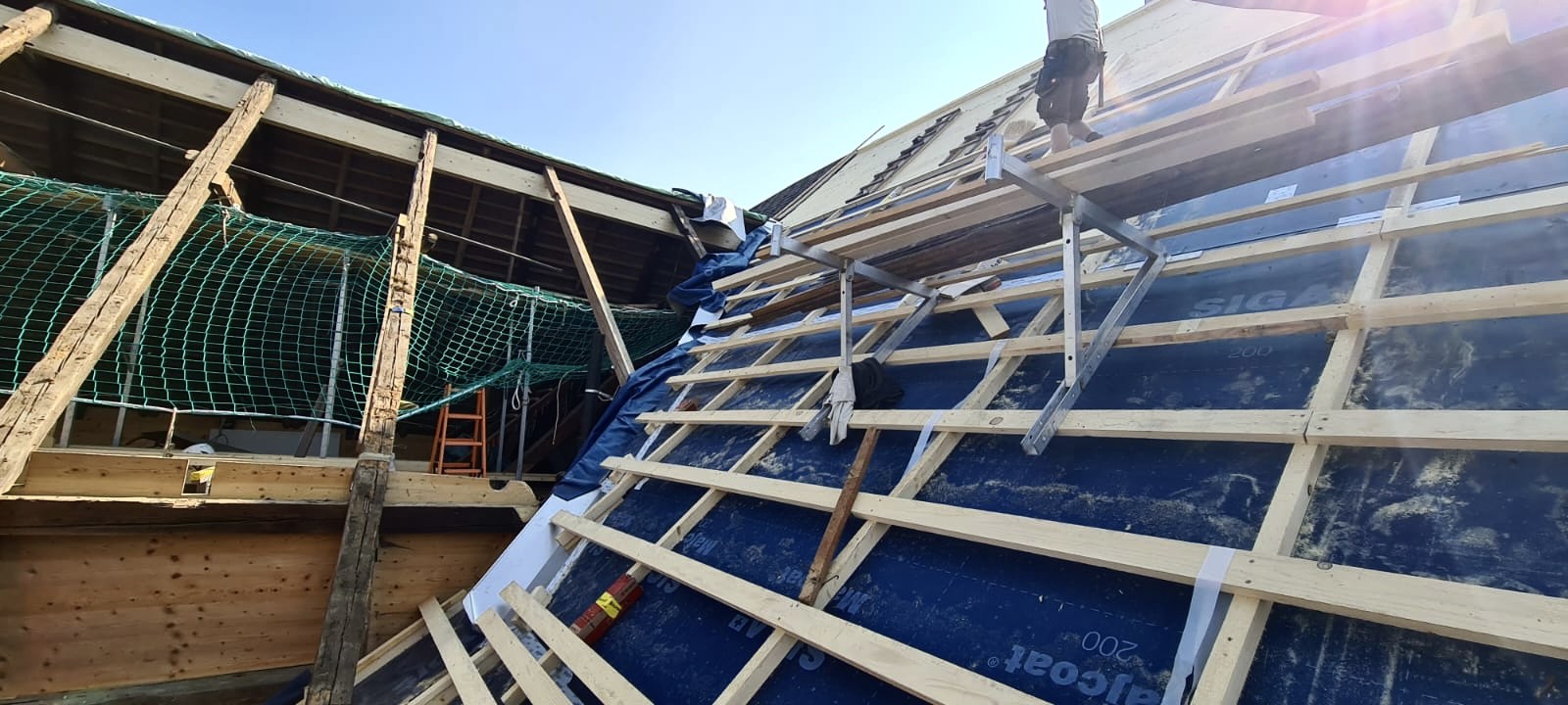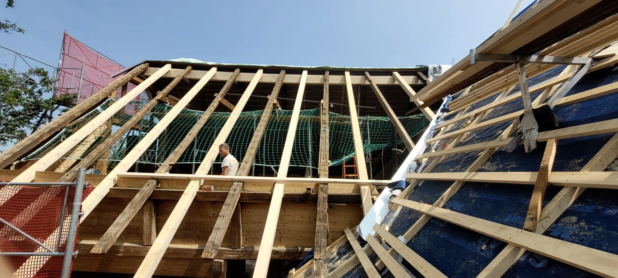 Erst nach dem Ausdecken konnte man sehen, dass die First verstärkt und einige Sparren ersetzt werden mussten, da sie doch sehr in die Jahre gekommen sind.👵🏻