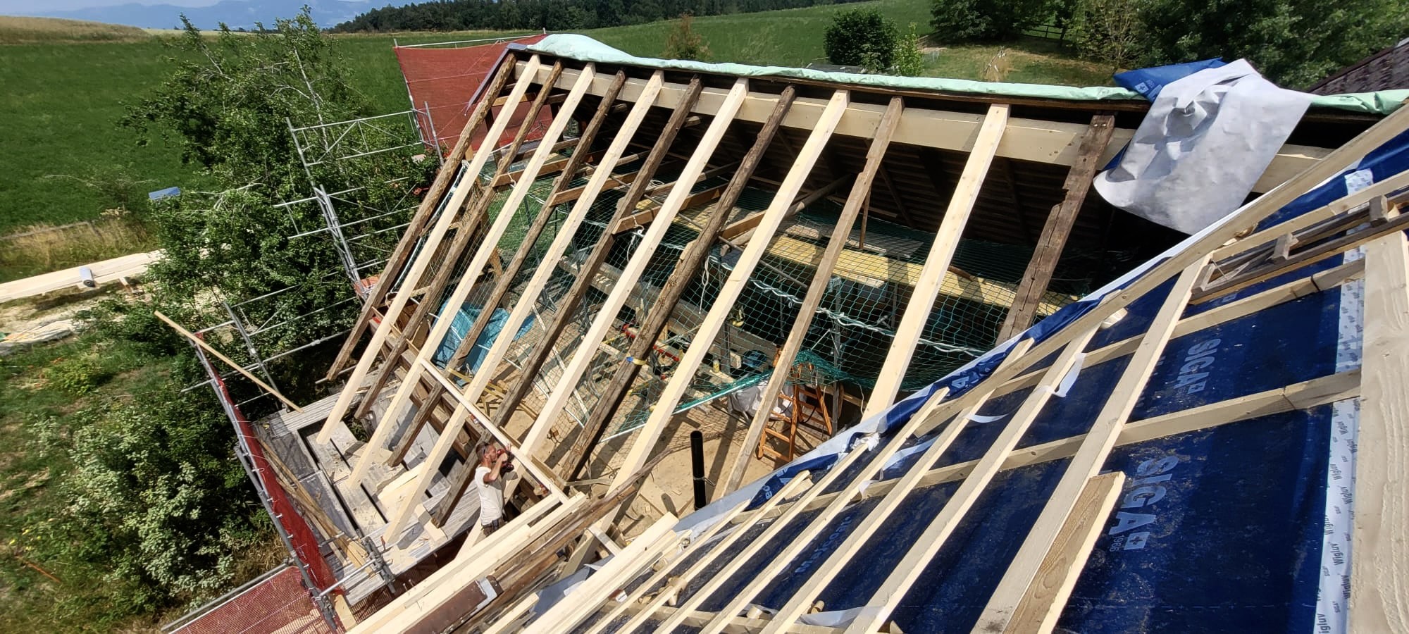 Bei diesem Bauernhaus wird von unseren Zimmerleuten eine Dachsanierung für eine Solaranlage gemacht.🏠🏗️