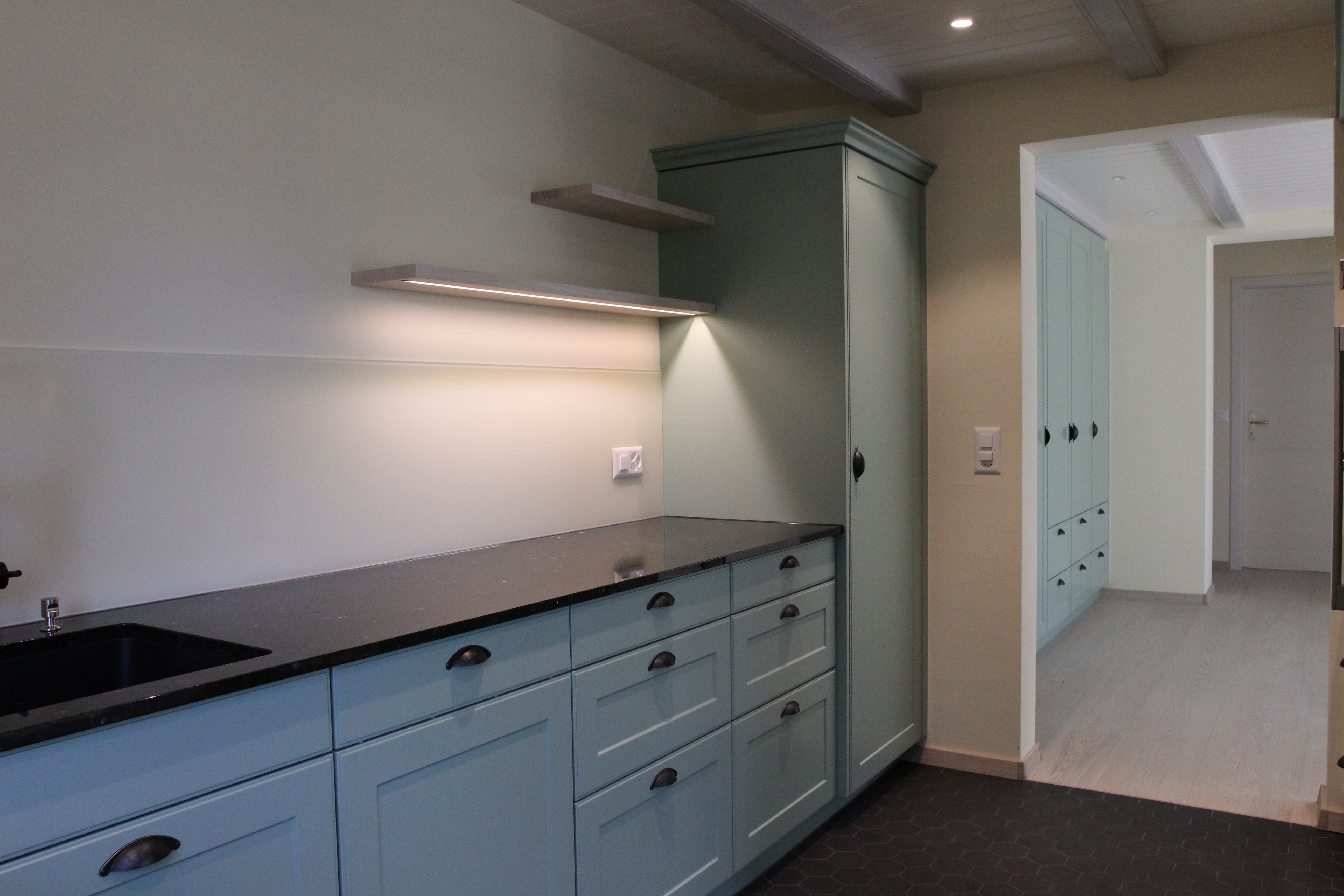 Auch eine Küche kann Farbe tragen. 🎨Dies sieht man an diesem schönen Beispiel mit gestemmten Fronten im Landhausstil.🍳👩🍳