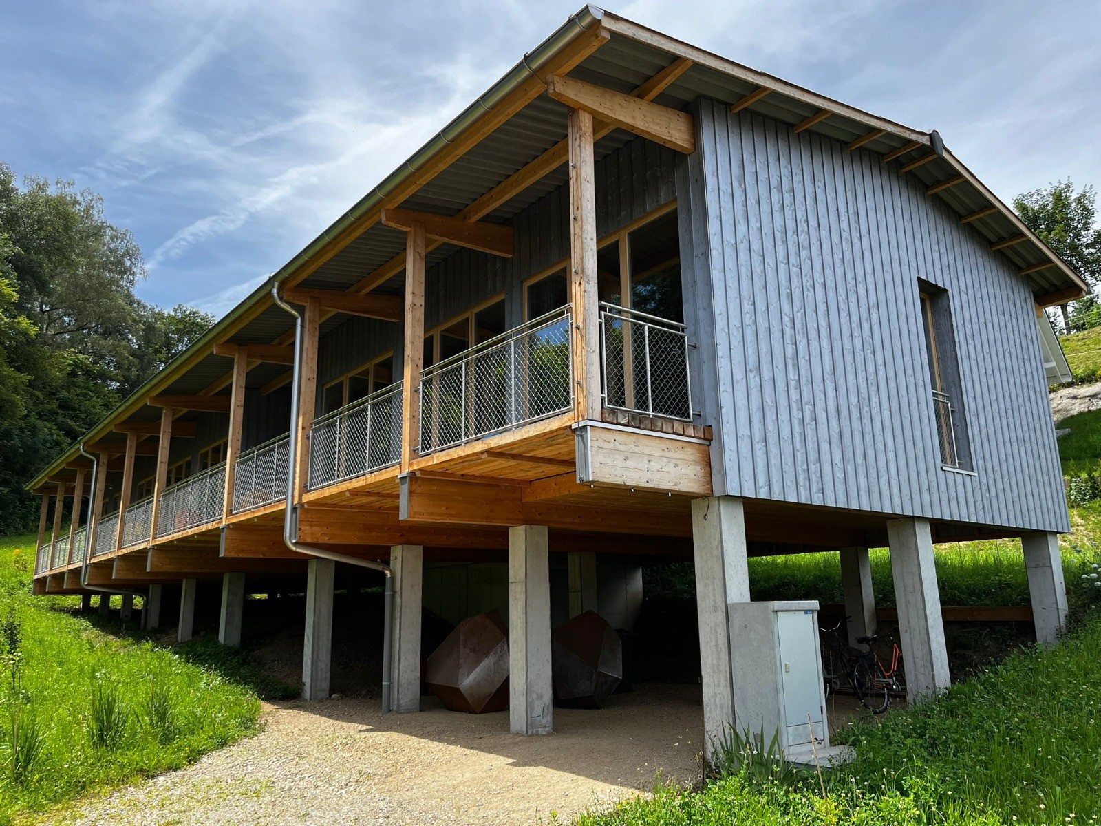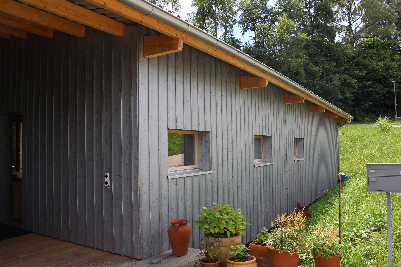 Bei diesem Wohnhaus durften wir vor einiger Zeit alle Holzbau- und Schreinerarbeiten verrichten. So auch die Fassade. Dies ist eine T-Leisten Schalung in der Farbe Perlmutt 30. 🏠😎
