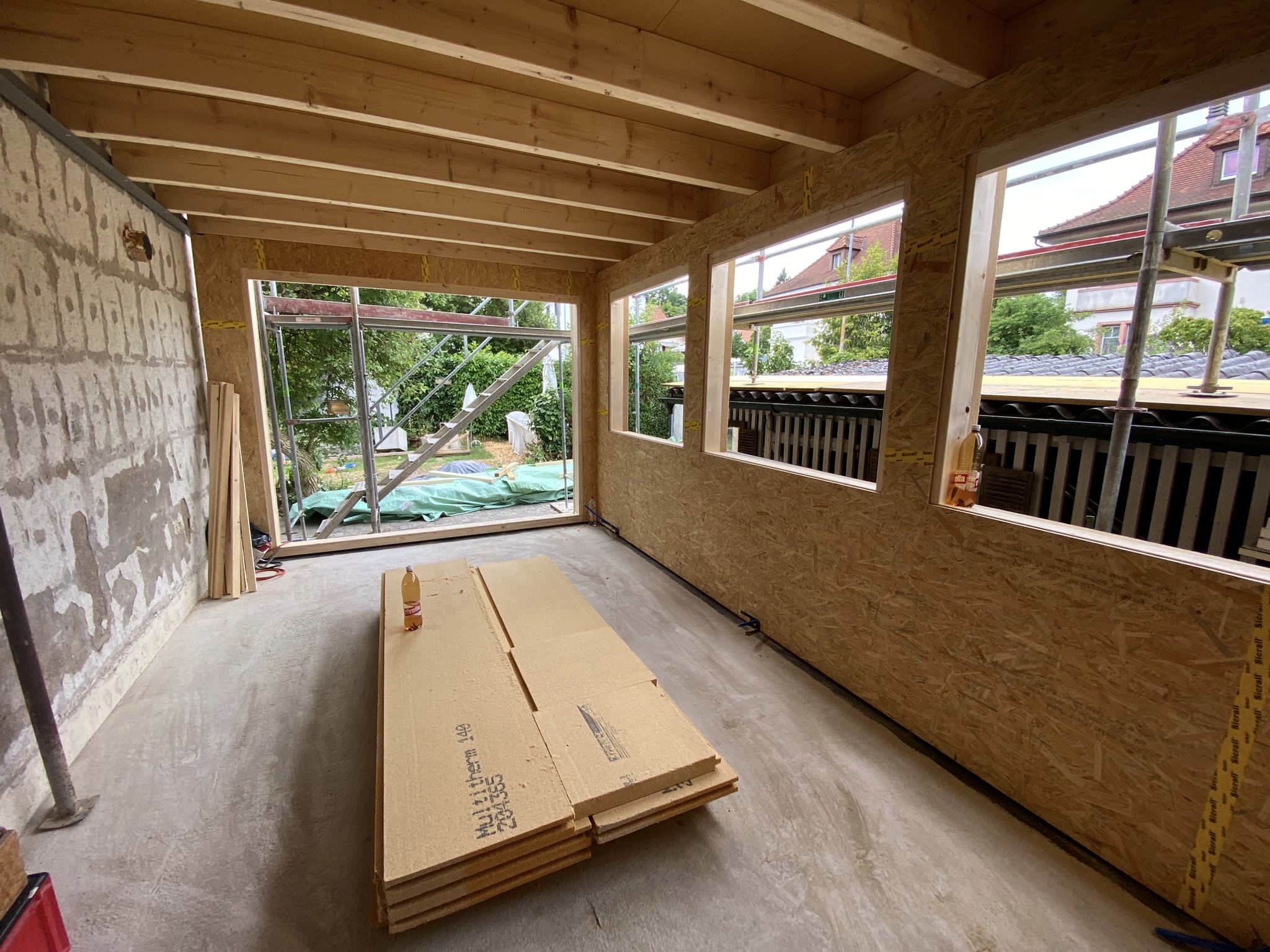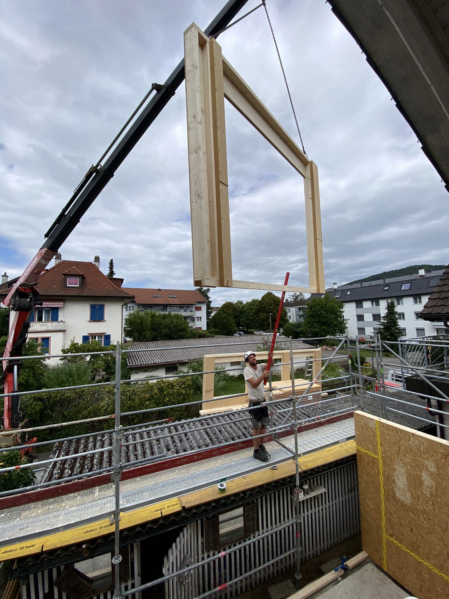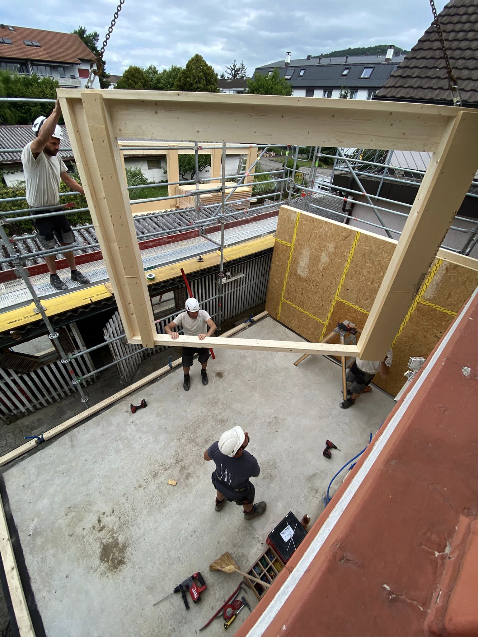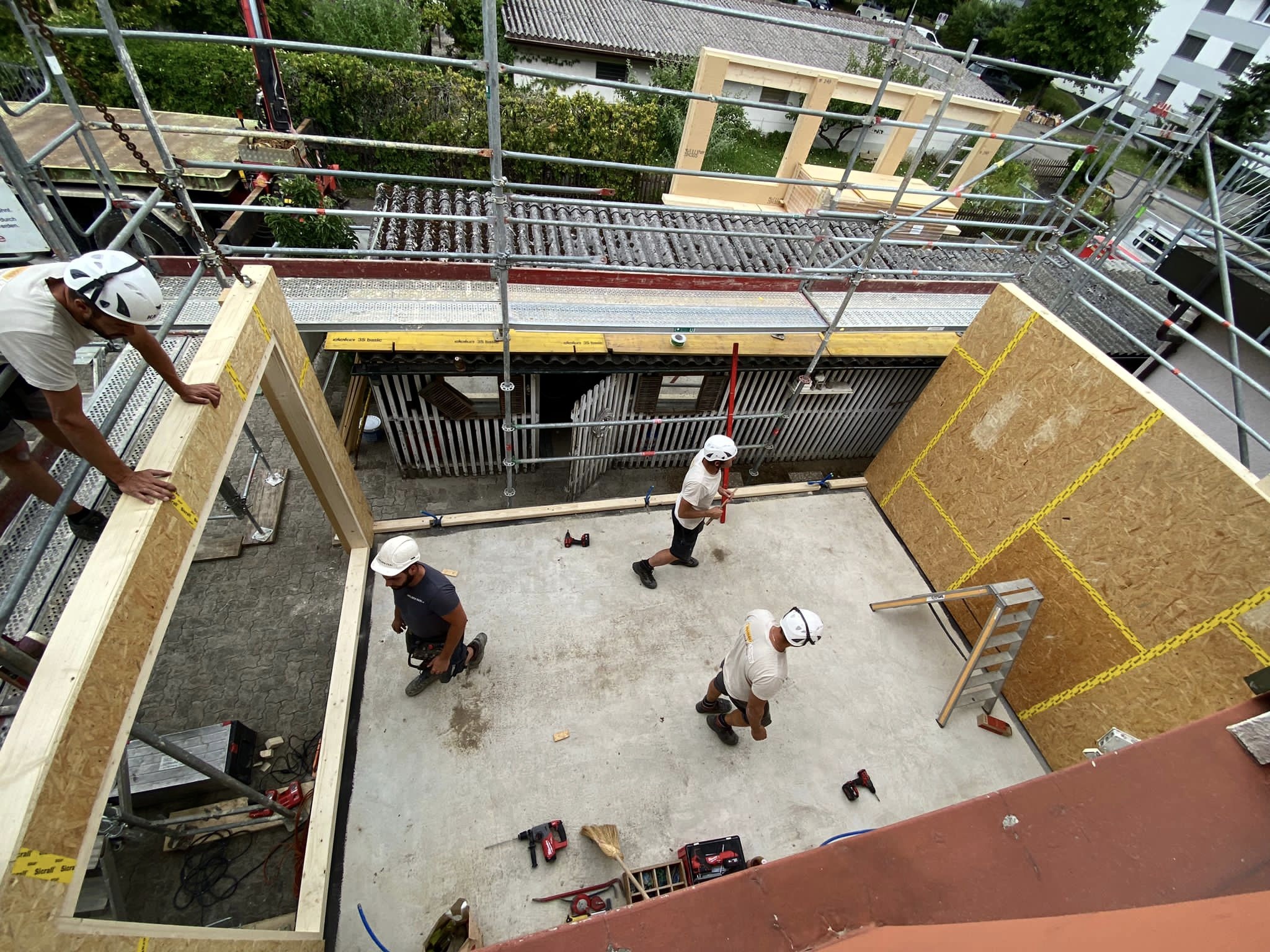 Hier wird von unseren Zimmerleuten ein Hausanbau in Elementbauweise aufgerichtet.🏗️💪🏻👷‍♂️