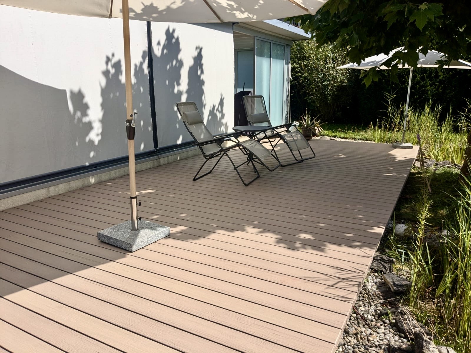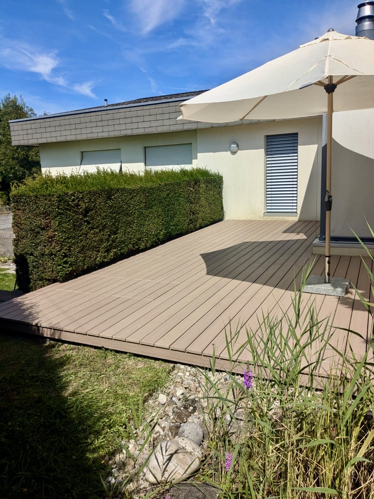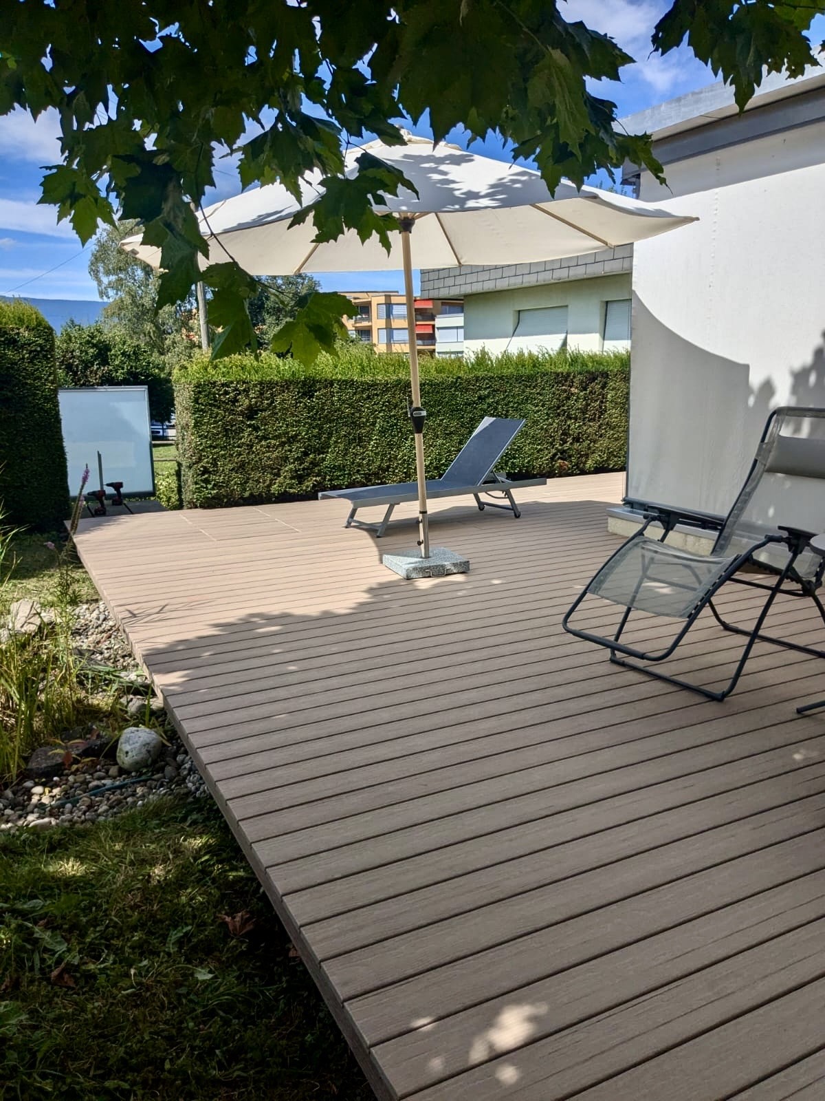 Da sich der Boden absenkte, wurde es uneben und es musste ein neuer Terrassenboden her. Nun sieht alles wieder frisch aus und man kann sich so richtig entspannen. 🏖️