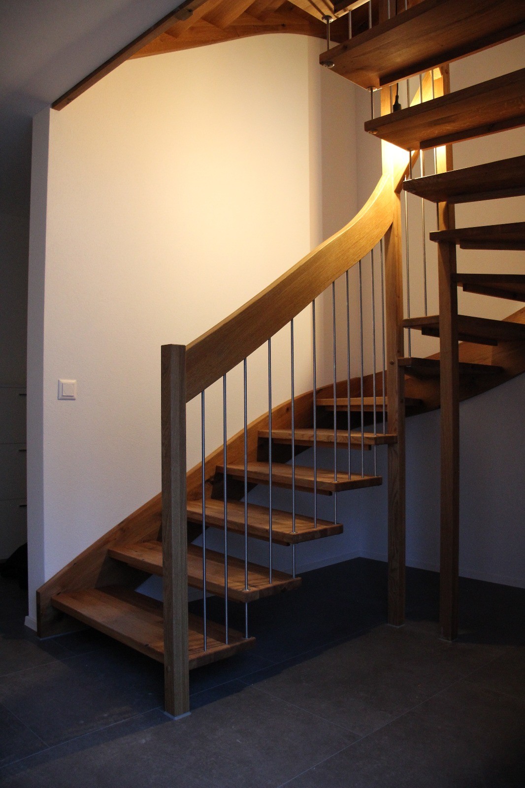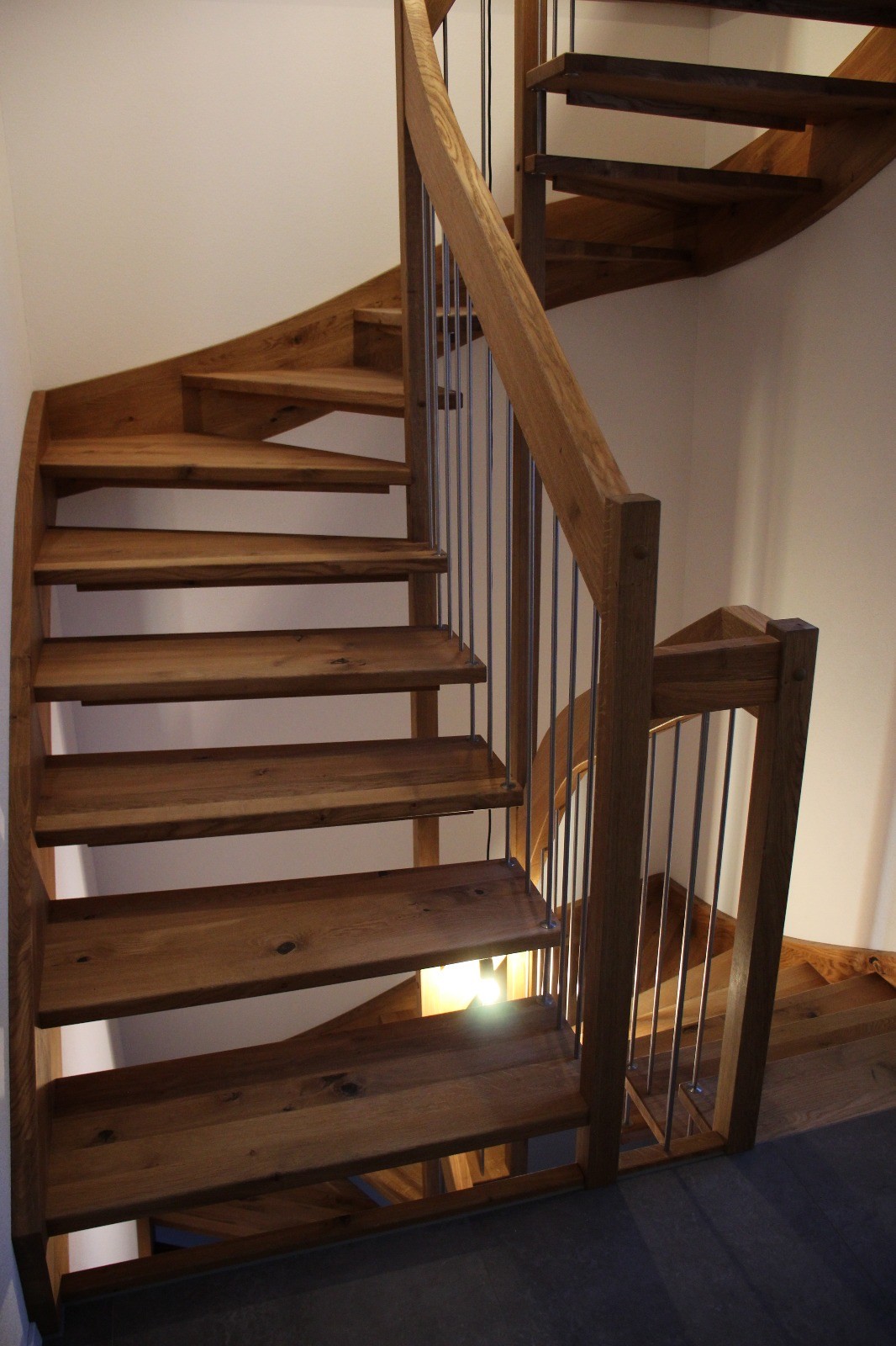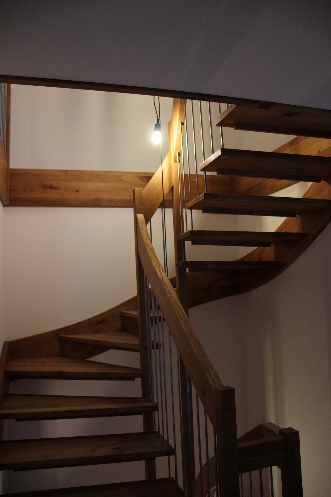 In einem Einfamilienhaus haben wir nebst einer Aufstockung und einer energetischen Sanierung auch ein neues Treppenhaus gemacht. Die Treppe reicht über drei Stockwerke und die Tritte wurden teils am Handlauf aufgehangen. Dadurch wirkt sie leichter und es kommt viel Licht hindurch. 😊💪🏻