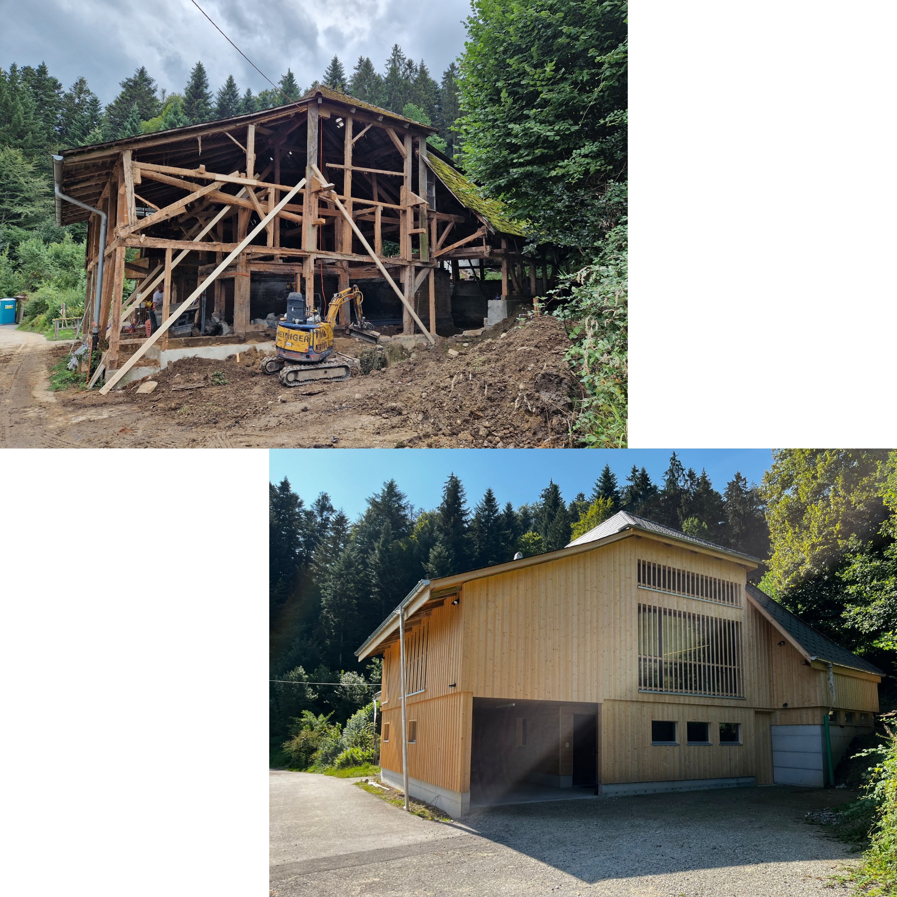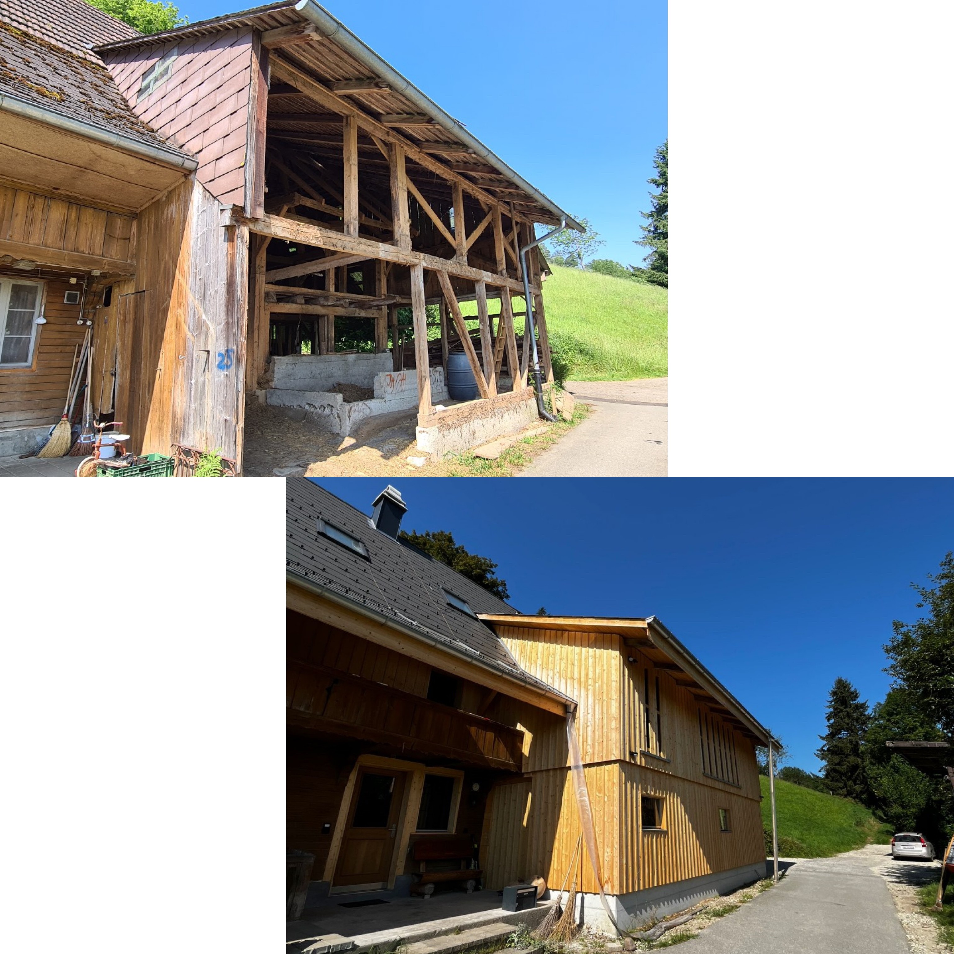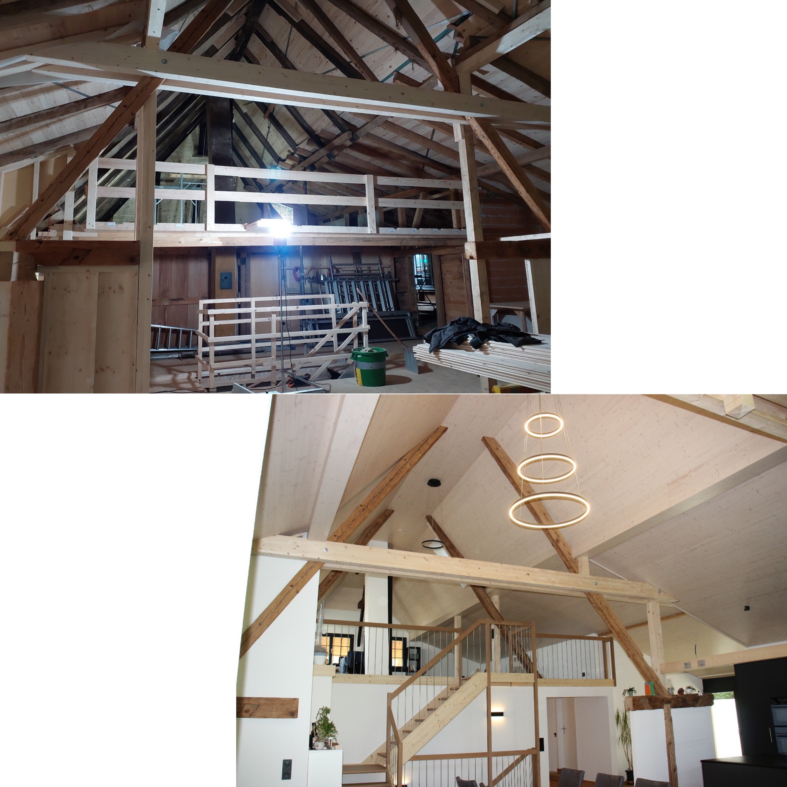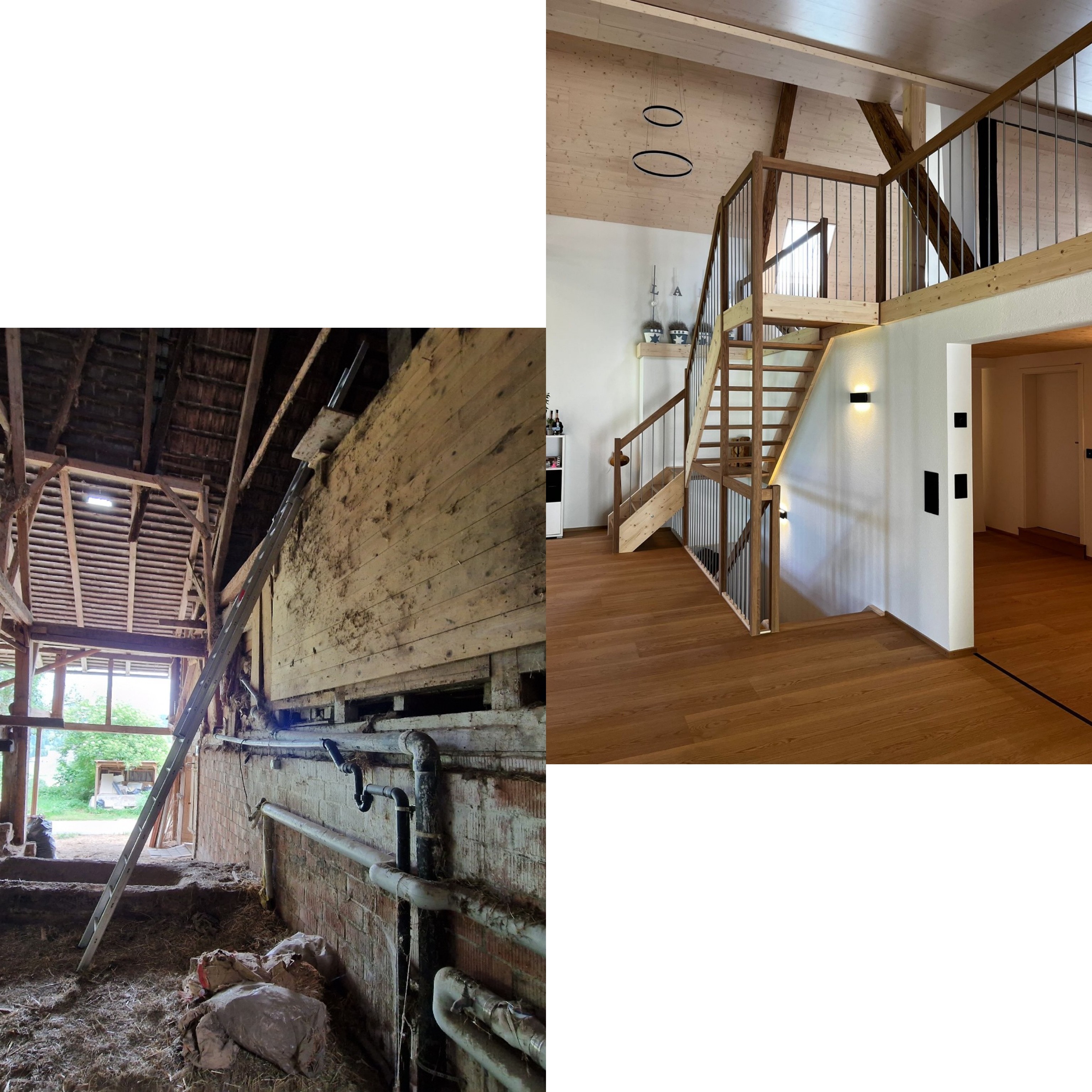 Die Gesamtsanierung eines Bauernhauses ist nach fast zwei Jahren (inklusive Planung) endlich fertig. Bei diesem schönen Projekt verrichteten wir alle Zimmer- und Schreinerarbeiten und waren auch für die Planung und die Bauleitung zuständig. Auf den vorher, nachher Bildern ist die grosse Veränderung deutlich sichtbar. P.s. direkt unter der heutigen Küche war früher der Stall. 🐮😎